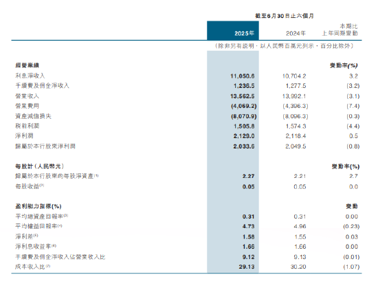 8月28日金融一线消息,中原银行发布截至2025年6月30日止六个月之中期业绩公告,数据显示,利息净收入约110.51亿元,同比增长3.2%;营业收入135.625亿元,同比减少3.1%;归属于该行股东净利润为20.336亿元,同比减少0.8%;每股收益0.05元。